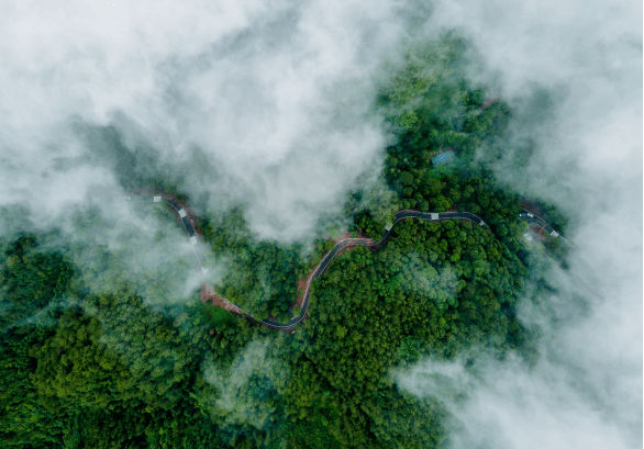 雨过天晴,登高望远。莽莽林海,雾笼迷朦,生态康养诗韵景;巍巍碧峰,云隐真颜,人间仙境幽梦还。