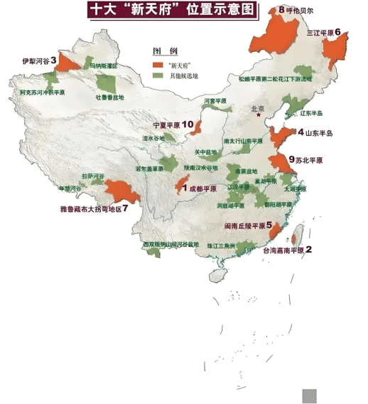 《中国国家地理》2008年第2期公布了由8位院士与一位学部委员组成的终审委员会对“新天府”榜单进行的最终审定,以至推迟了杂志的上市时间。十大“新天府”的排名是:成都平原、台湾嘉南平原、伊犁河谷、山东半岛、闽南丘陵平原、三江平原、雅鲁藏布大拐弯地区、呼伦贝尔、苏北平原、宁夏平原。终审委员会的各位专家对这些地方的评语,多集中于富饶、生态良好、居民安居乐业等几个方面,充分体现了《中国国家地理》此次评选所倡导的,人类与自然、农业文明与工业文明要和谐相处;发展要适度与可持续,拥有健康的生活方式。成都平原毫无疑问排列首位,捍卫了“天府之国”的称号。