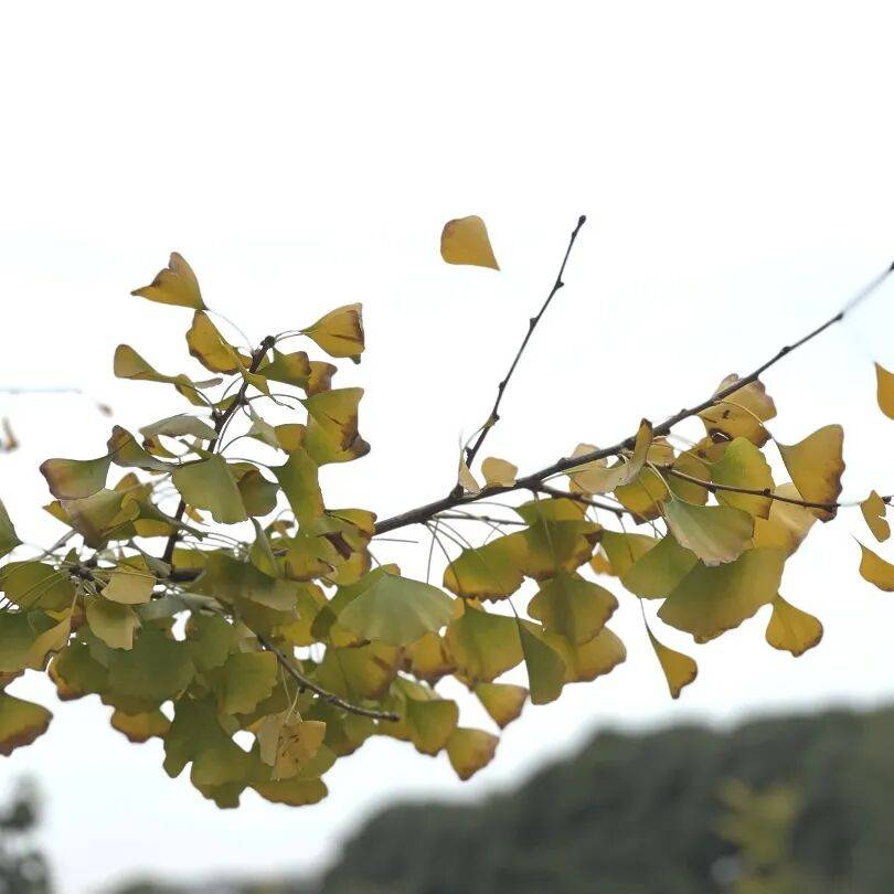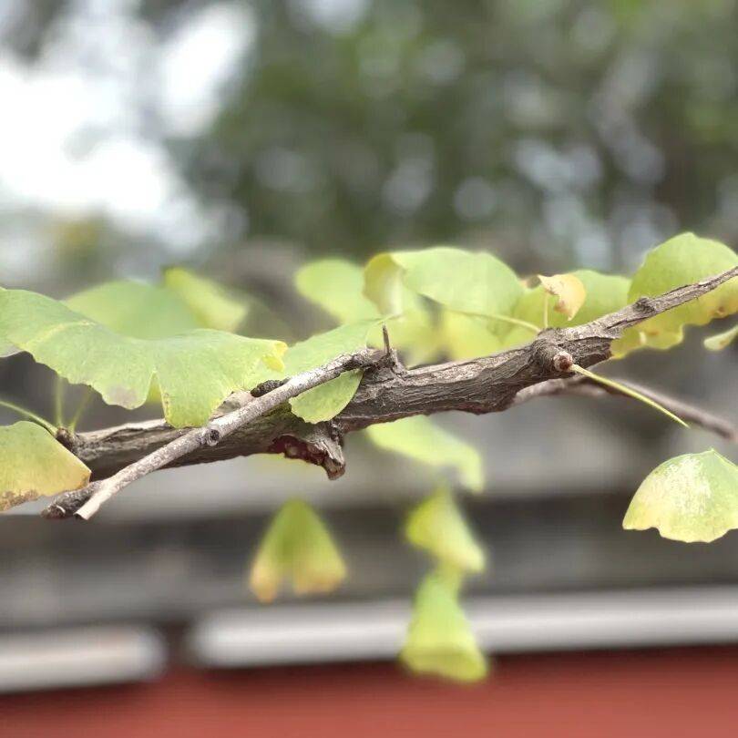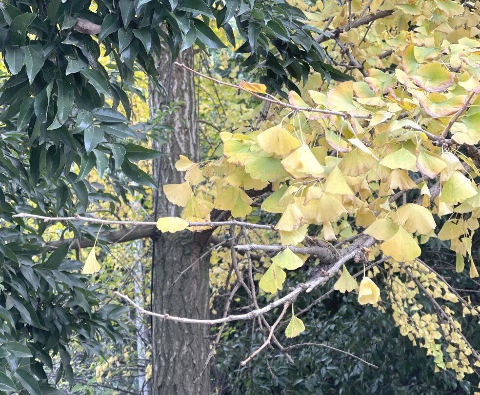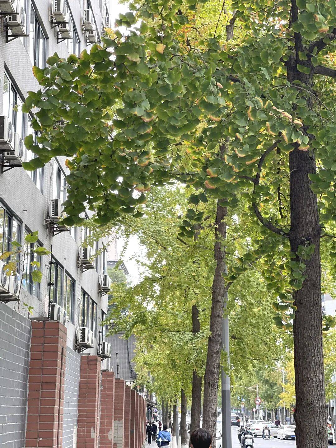 银杏树上青黄叶,小区楼旁灰白墙。冬日之下,闹市之中,漫步在银杏覆盖的街道上,仿佛能从压抑的气氛中解脱出来,享受片刻的悠闲。