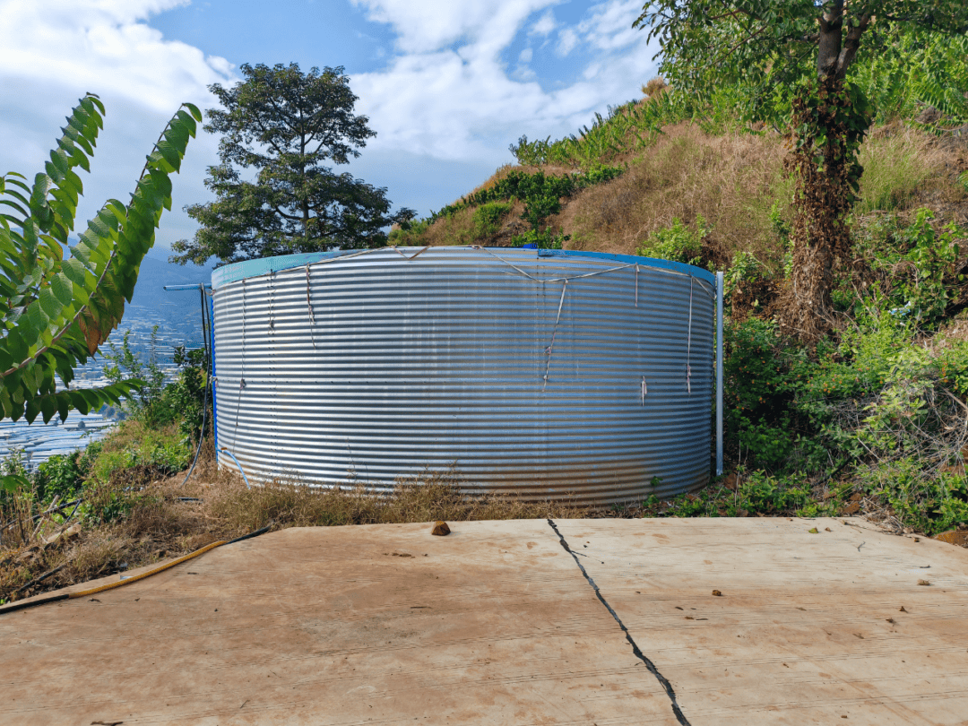 我们沿水泥路继续上行,最后被一个巨大的金属圆柱体挡住了去路。宽大平坦的水泥路,在这里出现了齐整整的断头。大伙儿席地而坐,一边休息,一边晒起太阳来。