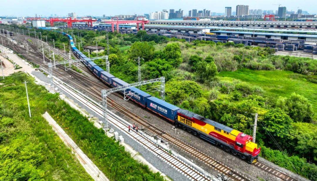 一列中欧班列(成渝)从成都国际铁路港驶出(成都市青白江区委宣传部 供图,图源:川观新闻)