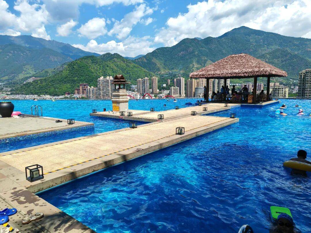 米易西山脚下的小区游泳池(陶洪生 摄)
