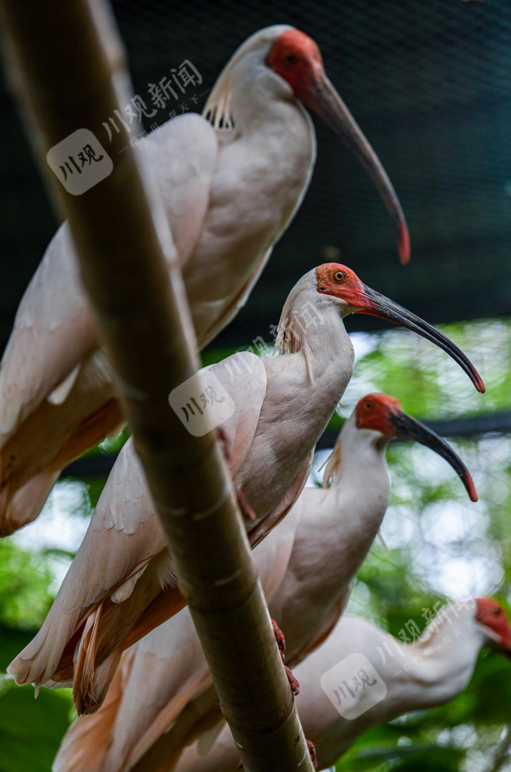 四川省自然资源科学研究院峨眉山生物资源实验站朱鹮驯养繁殖研究基地内的朱鹮