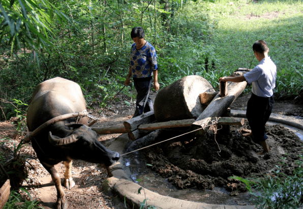 5.压榨:用木板轻压、加木头积压、加石头重压、用短棒吊压、用大棒重压、用绳子系棒加压、用双脚站在短棒上打压、用木板刮水、用棕丝或布条将水擦干、放榨、取榨、运纸垛。