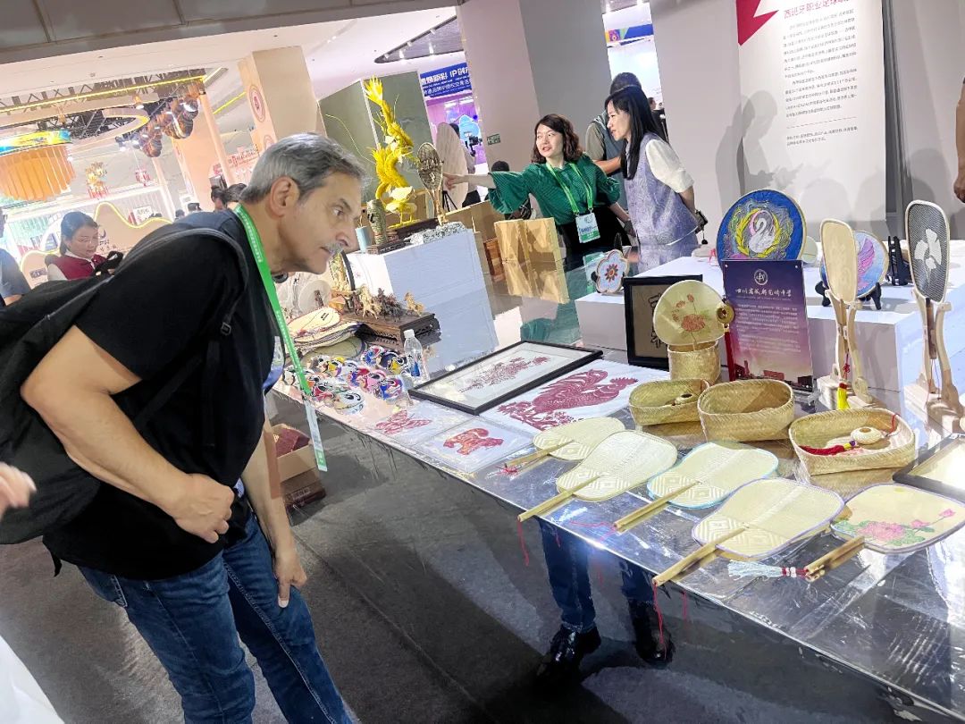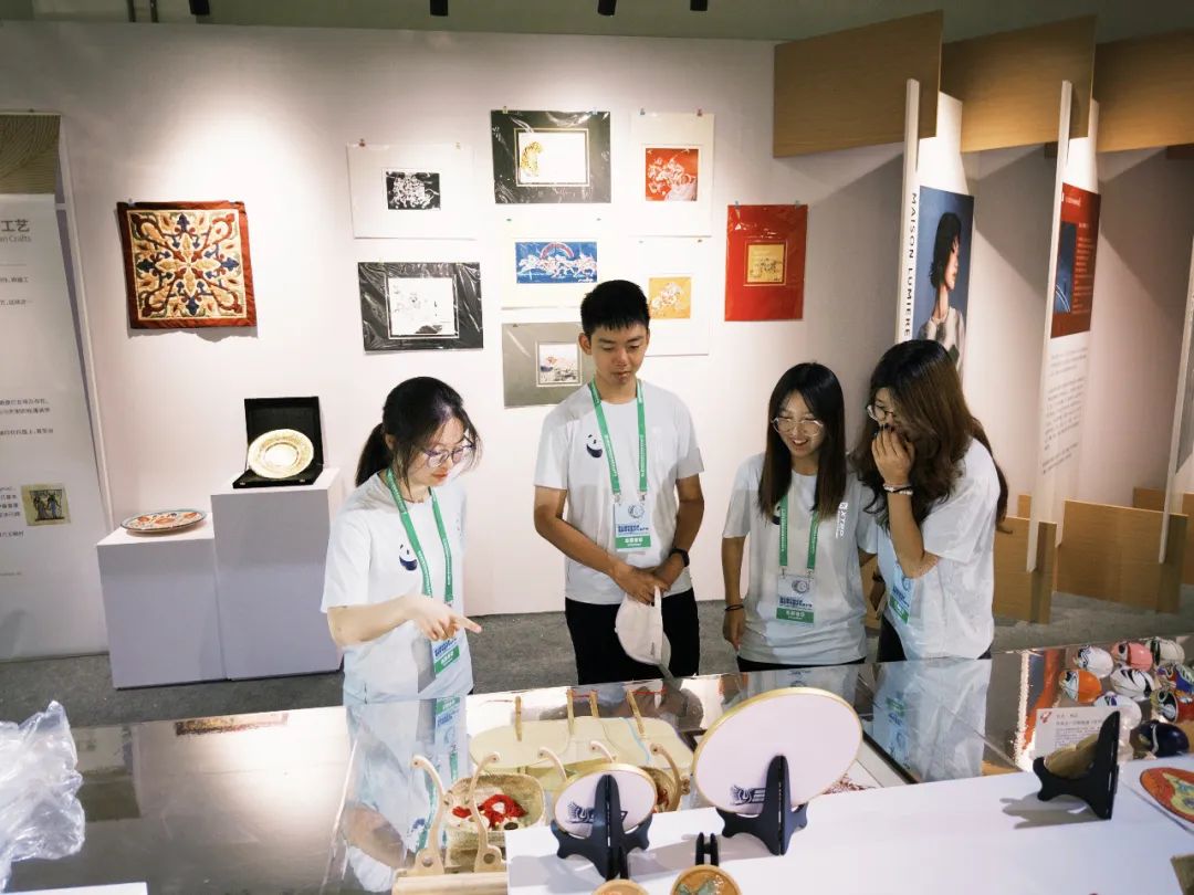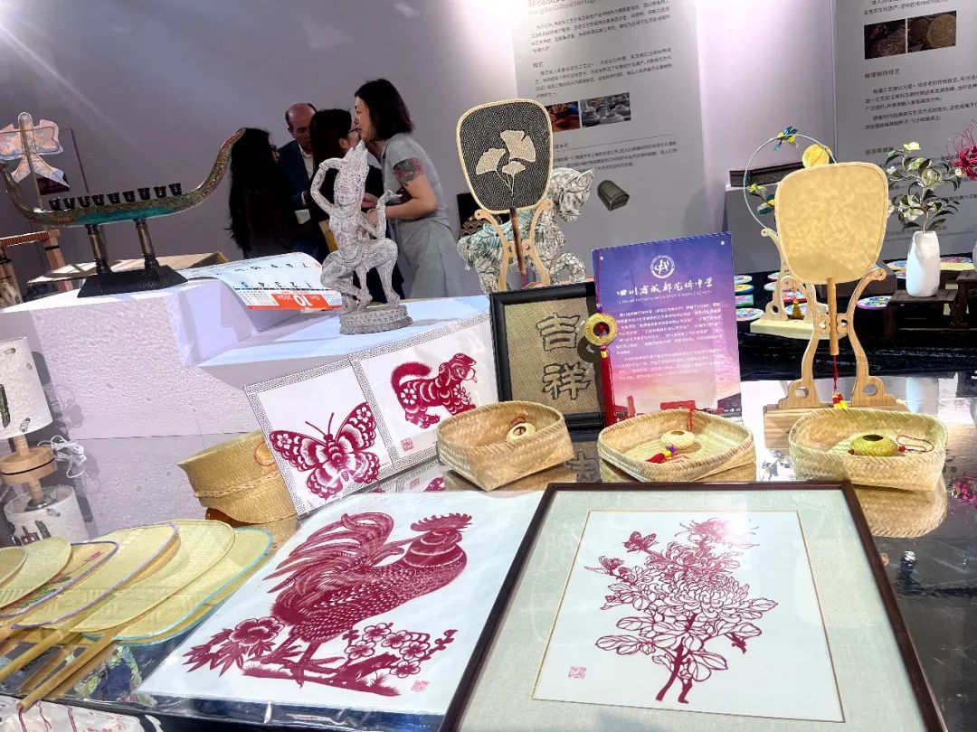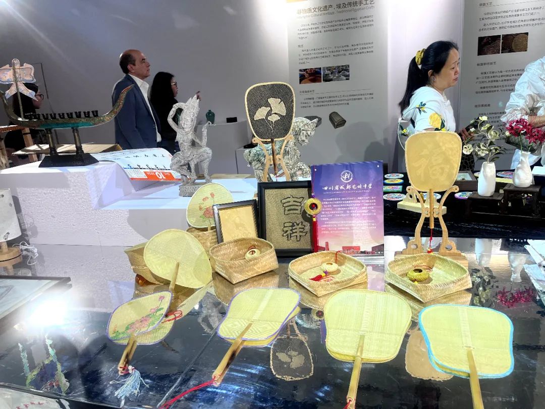 此次活动中,四川省成都艺体中学由竹编传承人、语文教师及外事处副主任何瑜带队,展出了一系列竹编和剪纸作品,集中展示了学校“非遗进校园”的育人成果。开展首日,展区便吸引众多观众驻足观看。