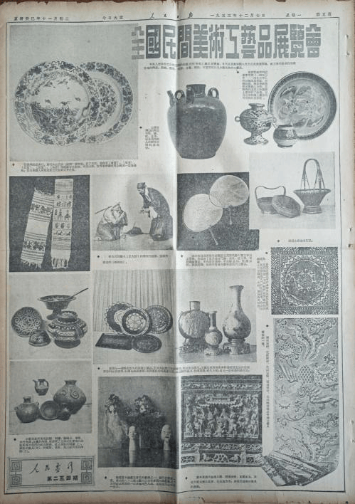1953年12月7日《人民日报》于“全国民间美术工艺品展览会”开幕当日,辟专版刊登了包括龚扇在内的部分优秀作品。所刊龚扇为其第二代传人龚玉章(1894—1966)创作,并于次年入编《民间美术工艺品》美术明信片。自此龚扇“邮向”全国,成为“国家名片”。