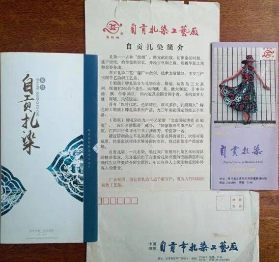 不同时期的“自贡扎染简介”及曾经的自贡市扎染工艺厂信封