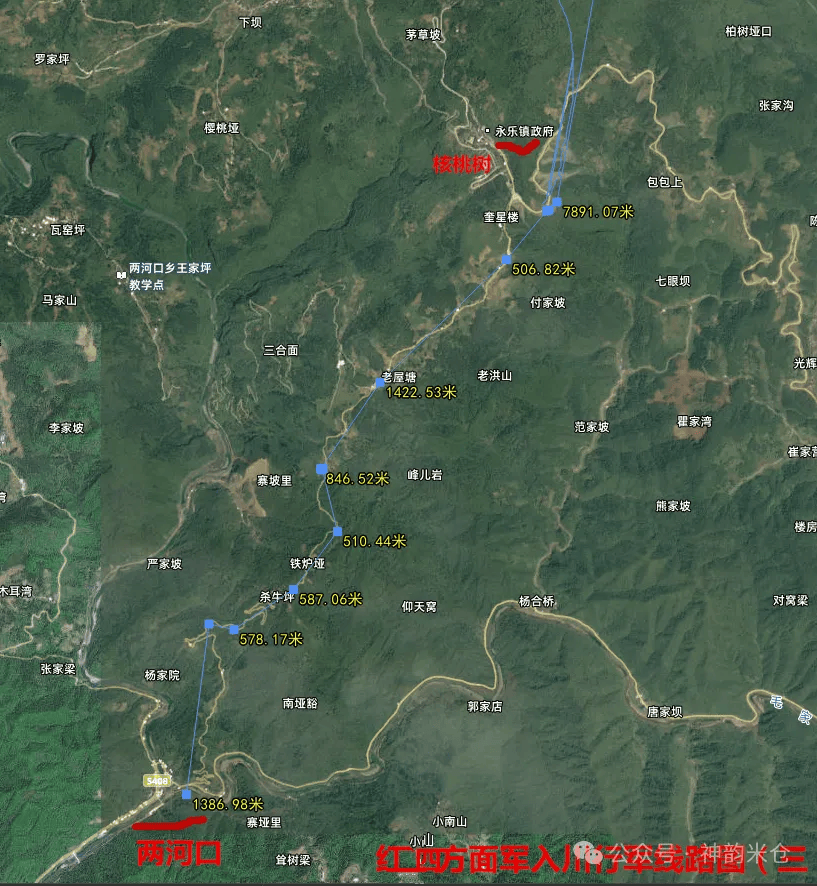 红四方面军入川线路卫星地图(张祺尉 制作)