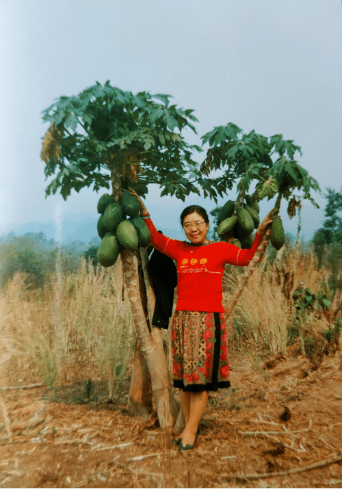 1994年,本文作者蔡玲老挝考察在木瓜树前留影