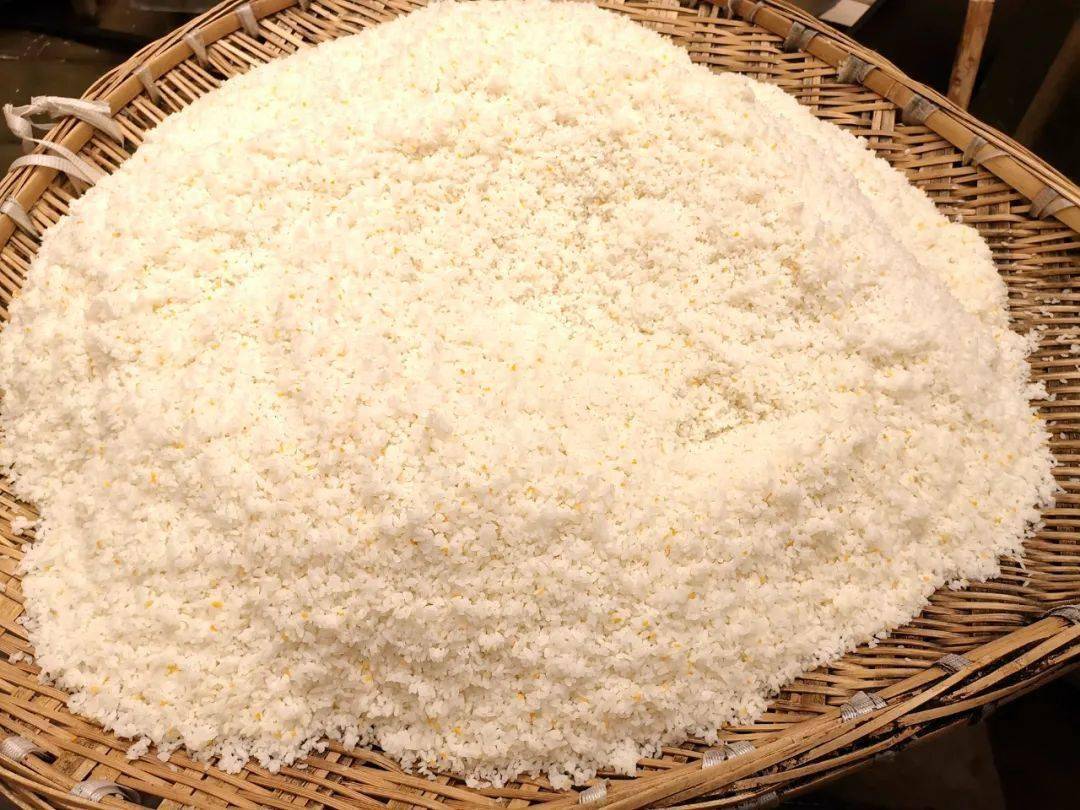 在顺庆,打谷席少不了的是“粉蒸肉”,又叫“鮓肉”,旧时农村因鲜肉不好割,有的便早把鲜肉准备好,切成大片,用米粉渍好,放在坛子里,到吃打谷席取出来上笼蒸熟,其味十分鲜香,且肥而不腻,一般每人准备二到三块,如同栽秧肉一样,可在席上吃,亦可用菜叶包起带走。酒是管够的,吃完酒席便休息到太阳将要落山时,再下田继续干直到天黑。一般人家一天便收割完毕;田土多的,第二天再干。这种习俗在农业集体生产时,便渐渐淡化,但各人家中仍是要吃打谷酒的,到20世纪80年代实行土地承包责任制后,这种习俗也曾一度在农村盛行。随着生活水平不断提高,打谷席也不会只囿于“鮓肉”了,鸡、鸭、鱼也成为打谷席上屡见不鲜的菜品了。