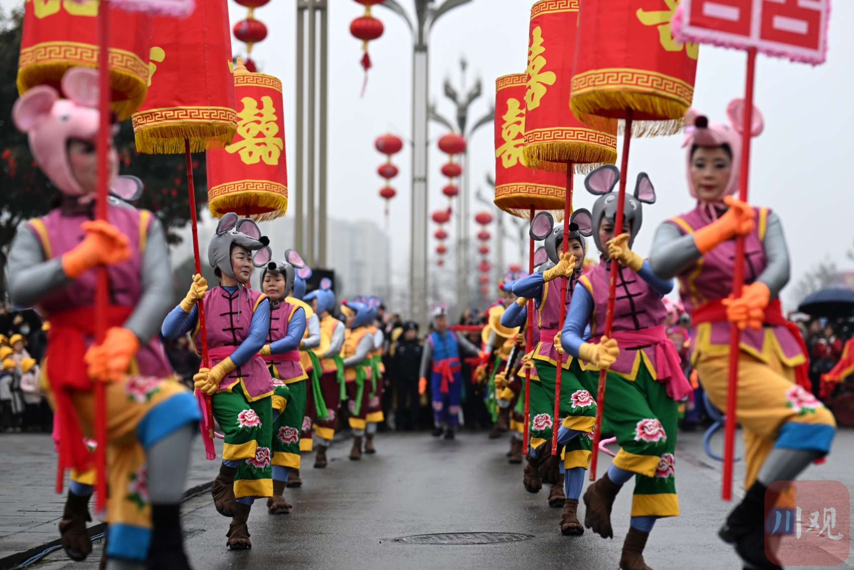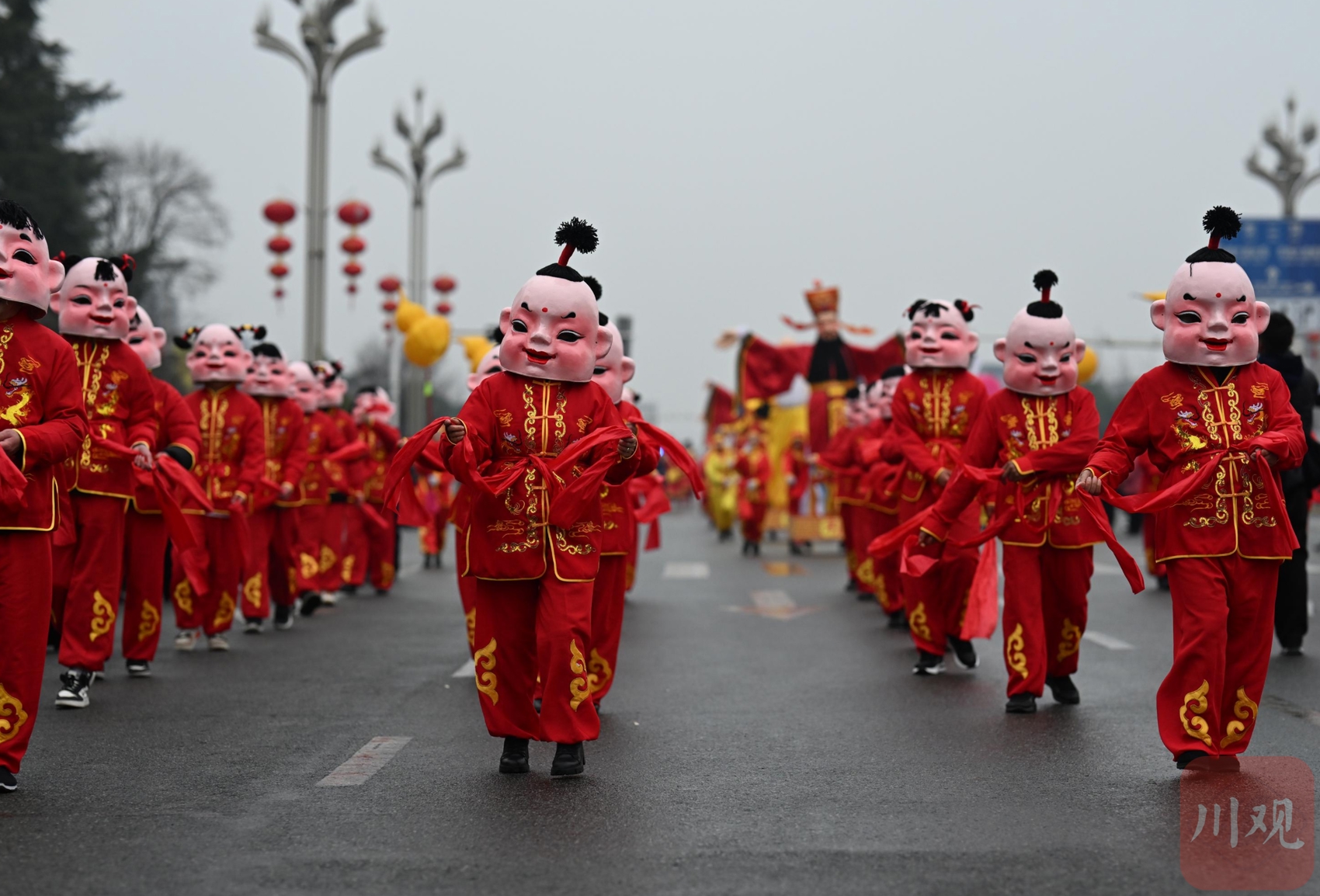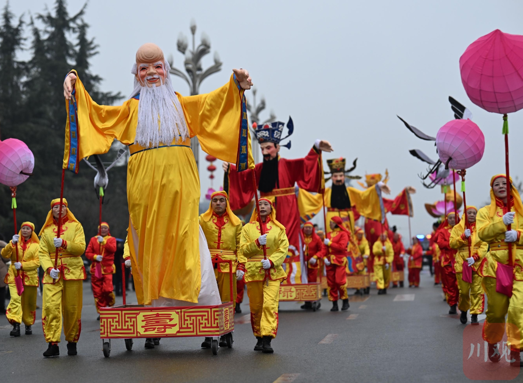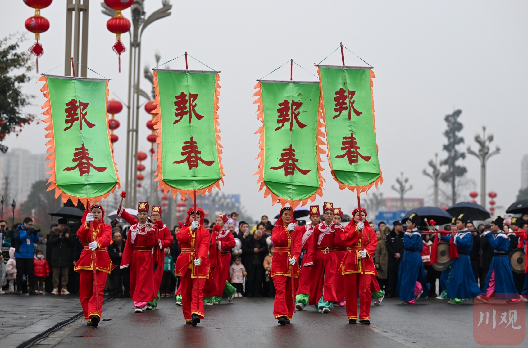 当日,以经典绵竹年画《迎春图》为基础进行创作的民俗巡游表演沿着绵竹市主干道进行,展示“绵竹年画”的文化特色。