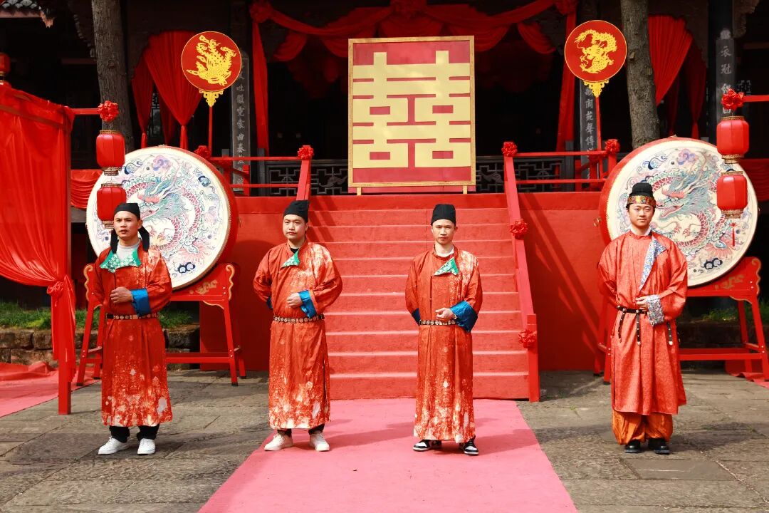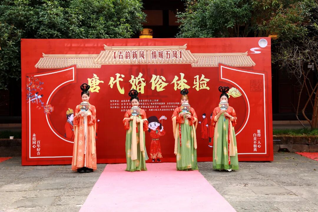 丙午年农历正月十五,元宵佳节。金堂县五凤古镇在晨光中苏醒,青石板路还带着昨夜春雨的湿润,南华宫前的红灯笼已高高挂起。今天,一场跨越千年的唐代婚俗礼仪在这里上演。