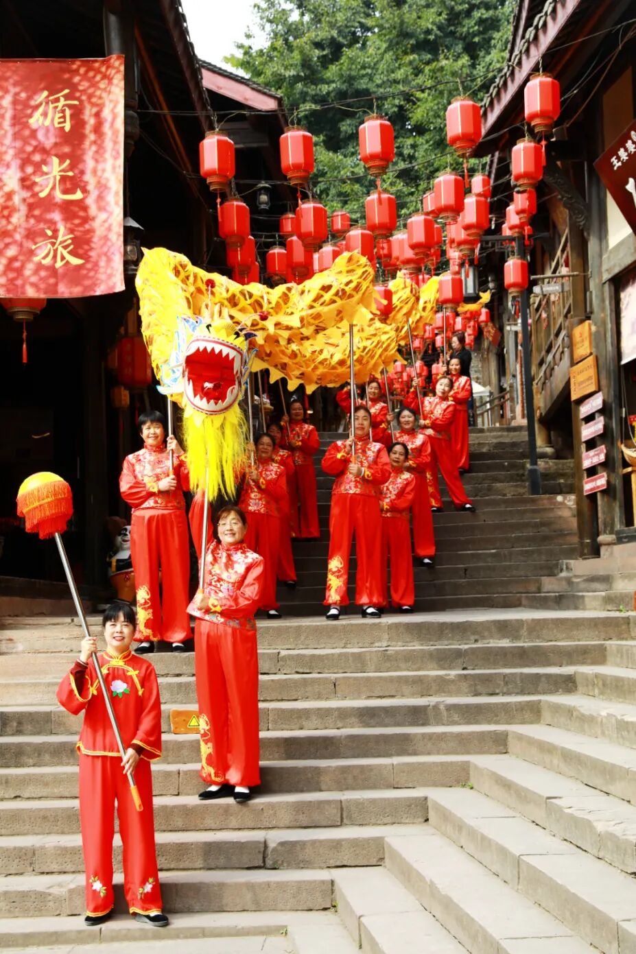 跟随婚俗队伍的五凤女子舞龙队