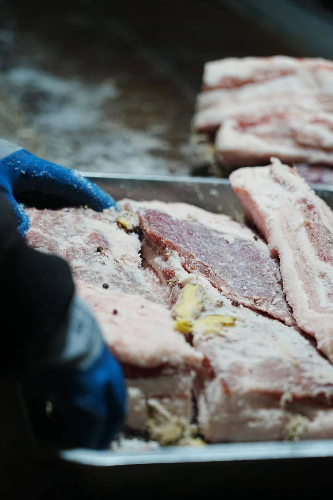 最不能逾越的规矩是什么?谢德勇不假思索:“真材实料,绝不取巧。猪,必须是吃粮食、养足一年的本地土猪;盐,必用自贡井盐——早年制作用的还是本地井盐,我们盐井村也正是因产盐而得名,海盐怕有污染,井盐回甜;花椒,必用茂县花椒;熏烤,必用果木、香椿木、水捞柴,那些有异香的木材一概不用,怕夺了肉的本味。”