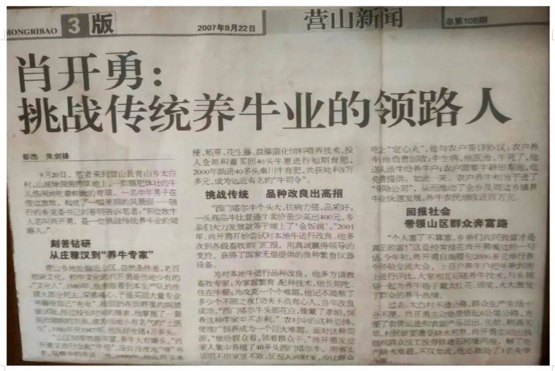 《肖开勇:挑战传统养牛业的领路人》(载《南充日报》2007年9月22日第3版)