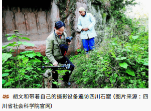 从1982年开始研究大足石刻起,胡文和用了30多年研究中国道教、佛教石刻及石窟艺术,取得丰硕成果,特别是对巴蜀宗教雕刻艺术的研究享誉学界。可以说,他是第一位历史文化全面、系统研究我国西南地区宗教石窟艺术的学者。30多年里,他细致梳理史料寻找石窟线索,翻山越岭寻觅拍摄石刻造像。四川大大小小石窟遗址,他都多次去过,有的重复去过上百次。为拍摄出清晰度高的照片,他用多年积蓄购置了一台当时最昂贵的照相机。