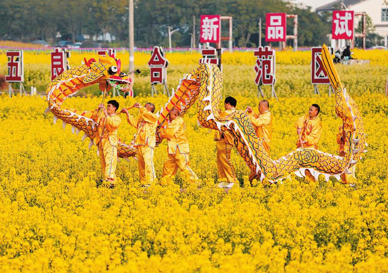 20250301四川日报图片 来源:20250301四川日报 发布时间:2025-03-01 12:08:43 浏览次数: 次 【字体:小 大】 2月26日,广安市前锋区代市镇西渝高铁前锋制梁场,西渝高铁广安段箱梁预制快速推进,图为工人正在绑扎浇筑用的箱梁钢筋。 周修建 摄(C视觉) 3月1日是农历二月初二“龙抬头”,又被称为“春耕节”“农事节”,预示着新一年的农事活动已经开始。 图为2月28日,泸州市泸县方洞镇舞龙队在油菜花地中舞龙祈丰年。 四川日报全媒体记者 何海洋 摄 来源: 20250301四川日报 终审:唐志昂 分享到: 关闭本页 【打印正文】