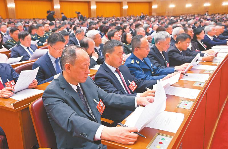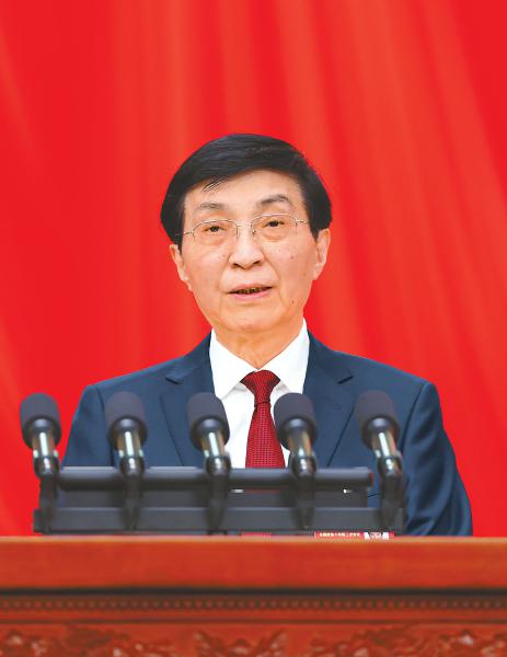 全国政协主席王沪宁代表政协第十四届全国委员会常务委员会,向大会报告工作。 新华社记者 刘卫兵 摄