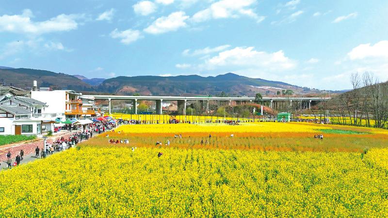 春回大地,凉山各地油菜花盛开,构成了一幅幅生机勃勃的春日画卷。抢抓赏花季,凉山各地纷纷推出各类文旅活动,让“春日经济”催暖文旅消费热潮。图为近日,会东县2025年“陌上姜州”春耕文化系列活动在该县姜州镇中和村拉开帷幕。 邹浩宇 摄