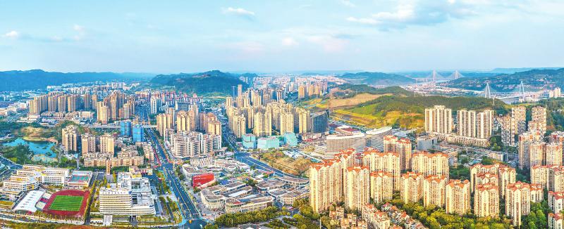 俯瞰宜宾三江新区城市景观。