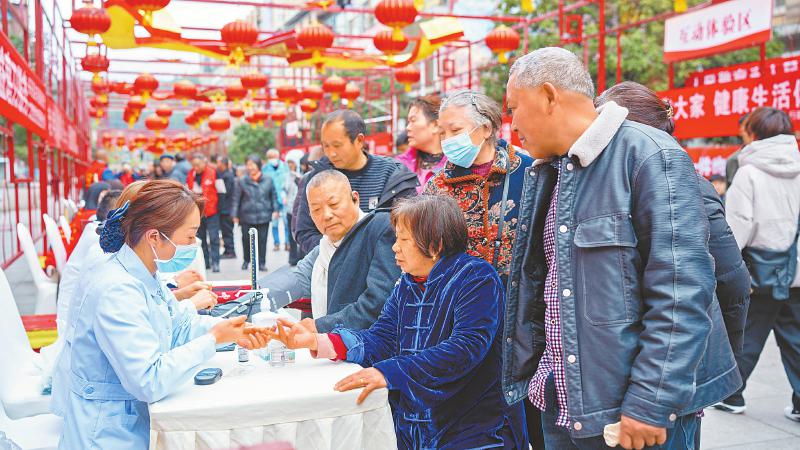 广元市旺苍县二〇二五年学雷锋志愿服务活动文明大集市“开市”,二十个志愿服务摊位有序排开,市民们根据自身需求,接受志愿者服务。陈加普摄(C视觉)