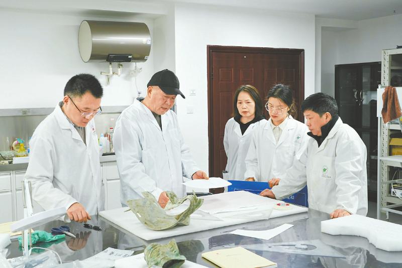 “大国工匠”郭汉中传授青铜器修复技艺。