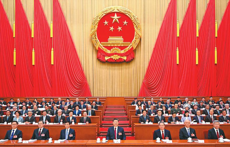 3月5日,第十四届全国人民代表大会第三次会议在北京人民大会堂开幕。党和国家领导人习近平、李强、王沪宁、蔡奇、丁薛祥、李希、韩正等出席大会。新华社记者 李学仁 摄