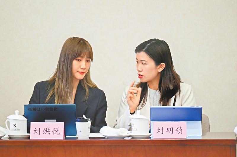 3月5日,会议间隙,四川省全国政协委员刘明侦(右)与北京市全国政协委员刘洪悦进行交流。 川报集团特派记者 杨树 摄