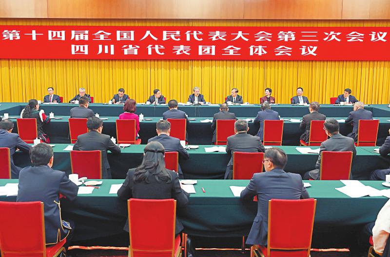 三月五日下午,中共中央政治局常委、全国人大常委会委员长赵乐际参加他所在的四川代表团审议。新华社记者刘卫兵摄