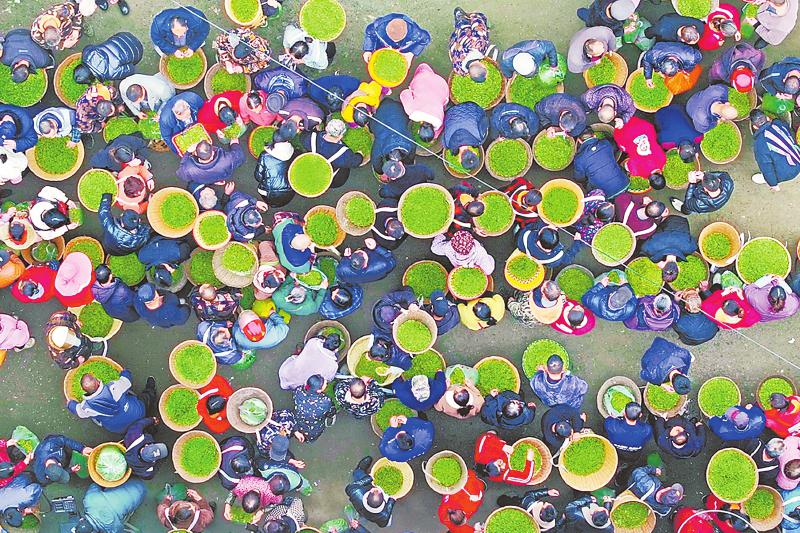 雅安市名山区乡镇茶叶市场,茶农在交易。 雅安观察 黄刚 摄