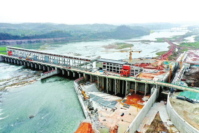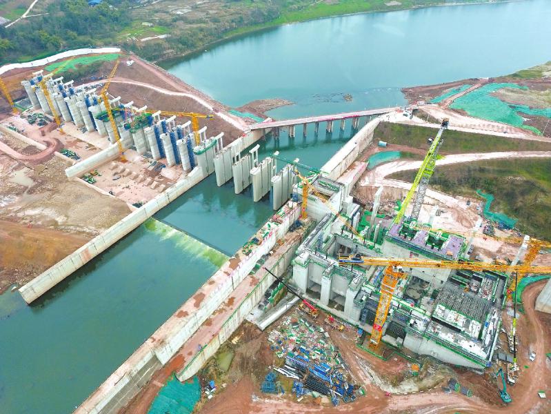 建设中的渠江风洞子航运枢纽工程。 严衡玬 摄