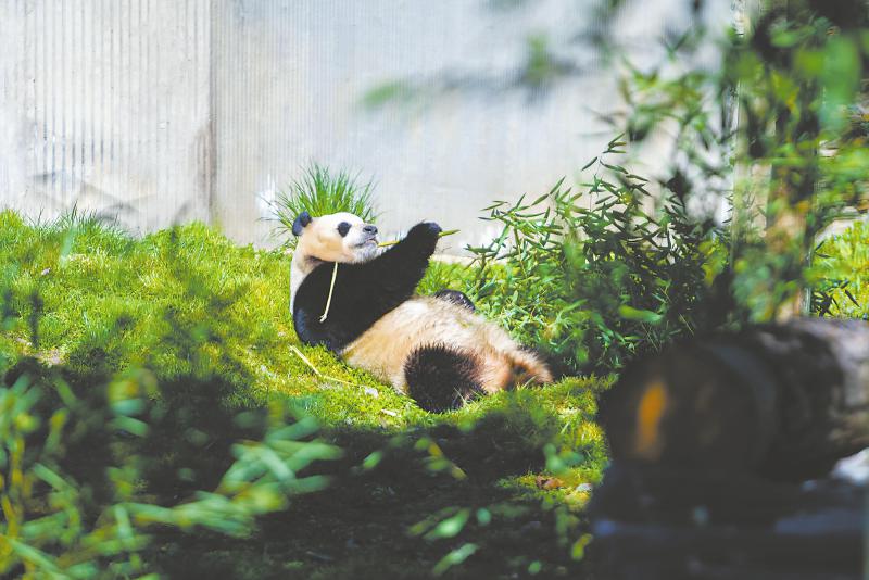 进食 3月25日上午9时许,大熊猫“福宝”在中国大熊猫保护研究中心卧龙神树坪基地幼儿园2号馆和游客见面。 四川日报全媒体记者 卢春阳 摄