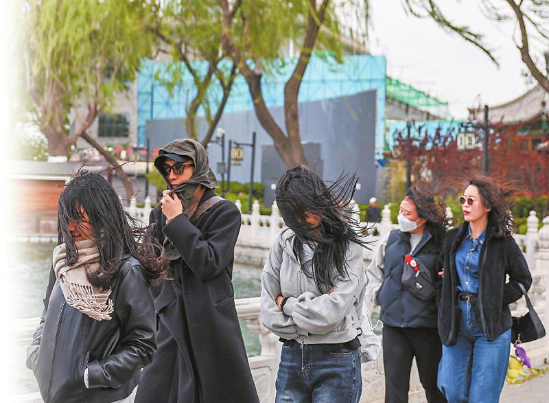 4月12日,人们行走在北京什刹海景区。 新华社记者 江汉 摄