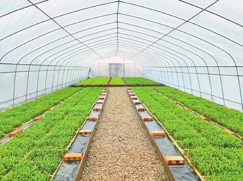 自贡市富顺县代寺镇李子村的漂浮育苗大棚中,高粱苗蓬勃生长。 自贡市扶贫“两会”供图