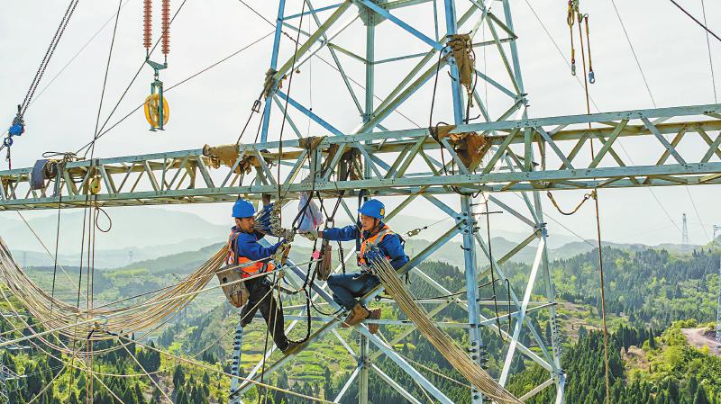 4月14日,国网四川广元供电公司进行雪峰至城东110千伏线路5至6号塔导线、地线展放作业。为保障广元绕城高速车辆行驶安全,施工人员正在现场搭设高速跨越防坠网。该工程完工后,将提高昭化区供电可靠性,同时满足绿色家居产业城现有企业和未来新增企业的用电需求。 张超 摄(C视觉)