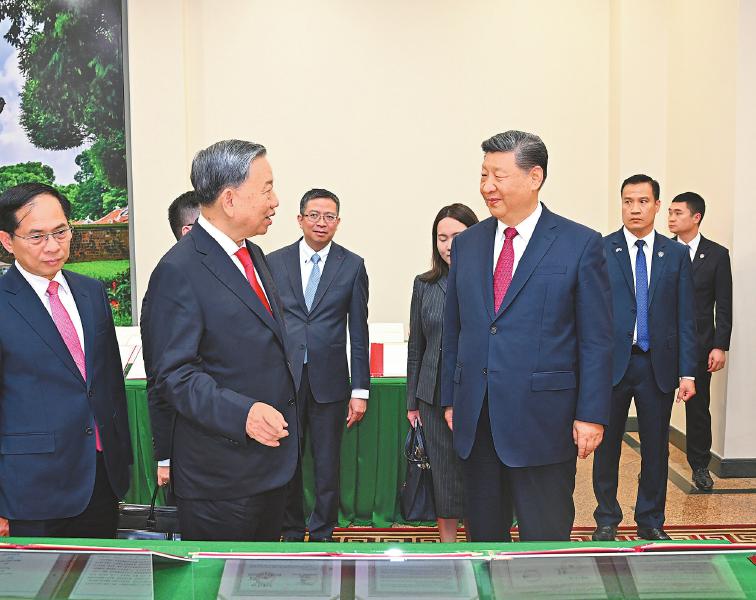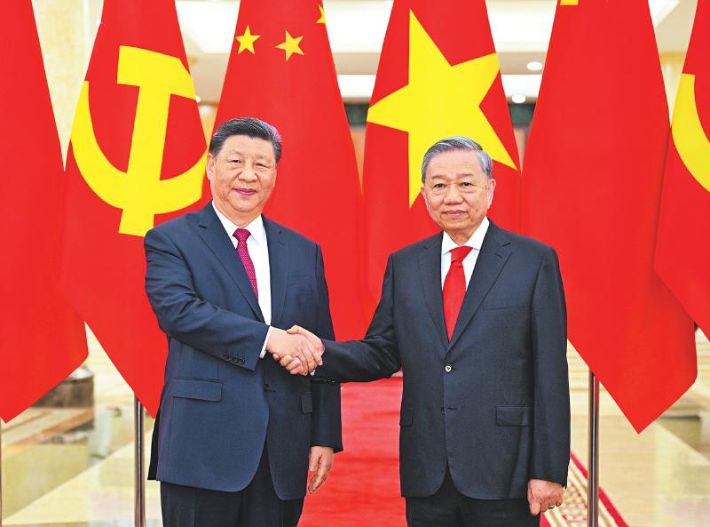 4月14日下午,中共中央总书记、国家主席习近平在越共中央驻地同越共中央总书记苏林举行会谈。新华社记者 李学仁 摄
