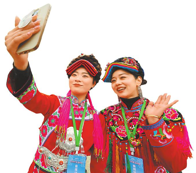 阿坝州首届村晚上的桃坪村姑娘。 杨徐晓 摄(C视觉)