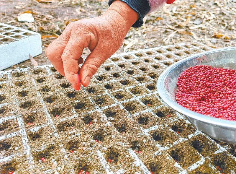 近日,荣县鼎新镇顺利村高粱高产示范片,村民在进行高粱漂浮育苗。 罗乐 摄