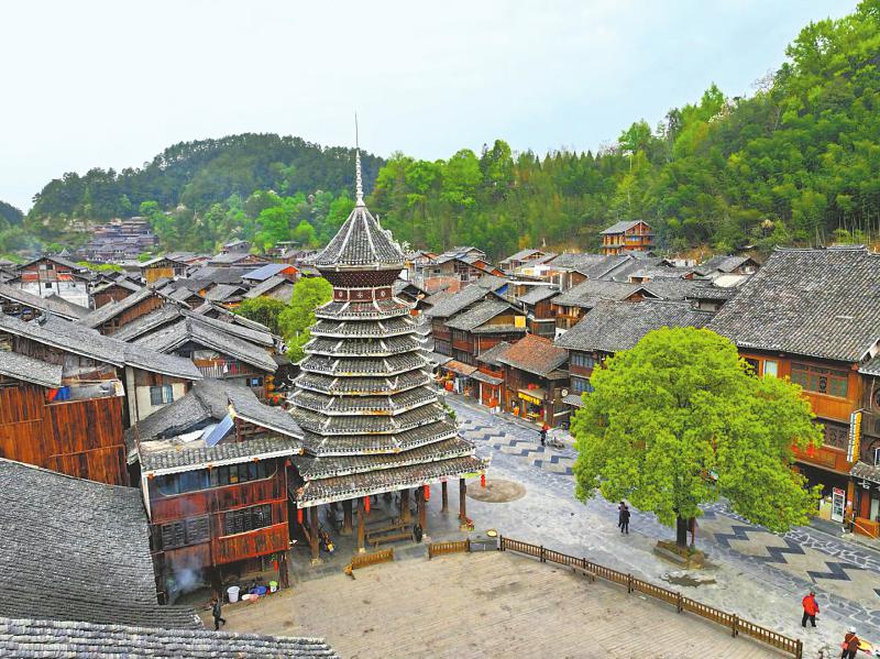 肇兴侗寨的特色建筑——鼓楼。
