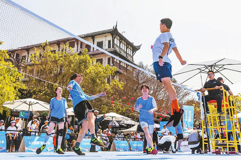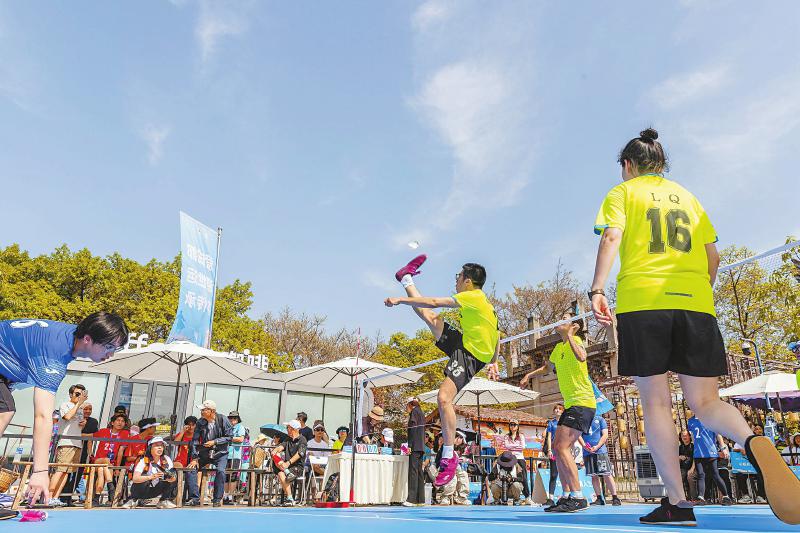 4月19日,2025“古镇杯”成都村毽公开赛在成都市龙泉驿区洛带古镇五凤楼广场开赛。秉承“运动赶集·观赛度假”理念,比赛与世运体验、特色市集等多元融合,传统运动创新办赛,有着2000多年悠久历史的毽球与千年古镇相映生辉。本次村毽公开赛的举办,是成都弘扬传统体育、助力古镇经济发展的一次积极探索。林漫 摄(C视觉)