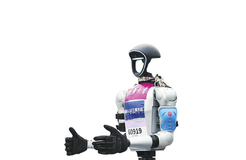 天工队选手天工Ultra在比赛中冲向终点。 新华社记者 方欣 摄