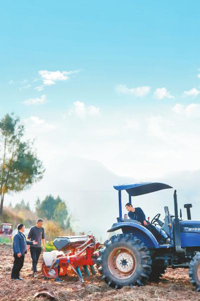 4月14日,达州市通川区青宁镇天断村,农技员指导种粮大户耕地和种粮。 达州观察 杨迎 摄