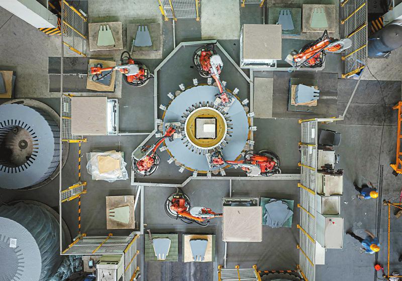 4月15日拍摄的东方电气集团东方电机有限公司冲剪分厂的定子冲片“无人车间”。该厂通过“智改数转”,人均产出可提升620%,劳动强度降低90%以上。