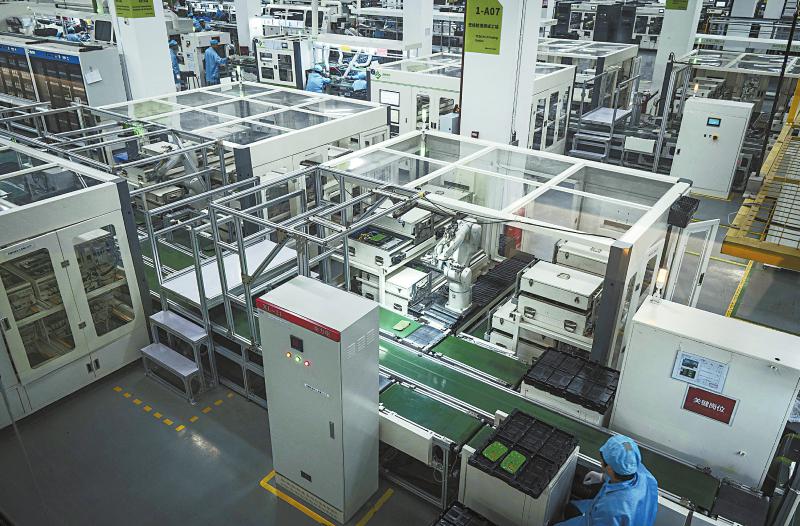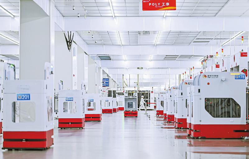 4月16日,通威太阳能(眉山)有限公司新建高效晶硅太阳能电池四期项目生产车间,数百台AGV小车来回穿梭搬运物料,智能化生产线高效运转。该项目自2024年3月投产以来,21条生产线满负荷生产,日产出成品电池480万片。