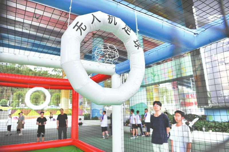 4月20日,在南充市嘉陵江风景绿道顺庆段的“嘉陵绿浪”公共体育场馆,一场别开生面的无人机足球趣味对抗赛上演。该活动由南充高中嘉陵校区、南充市白塔中学和南充市航空体育运动协会联合开展,意在让市民感受到创新科技的魅力。上图:无人机足球;右图:无人机足球穿越球门。 余中华 摄(C视觉)
