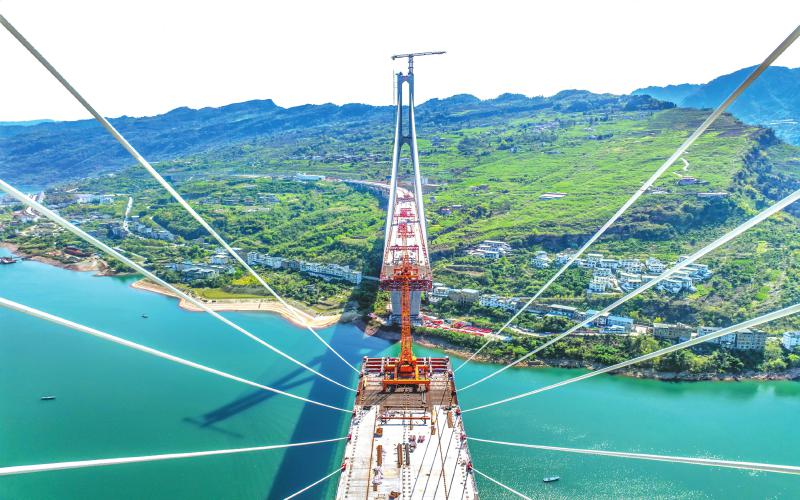 近日,宜宾市屏山县,新市金沙江特大桥建设正酣。曾三东 摄(C视觉)