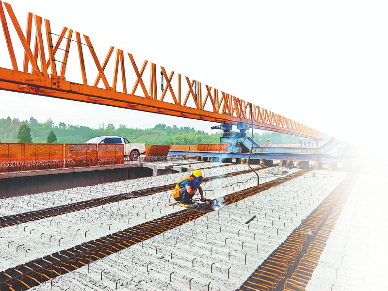近日,镇(巴)广(安)高速公路广安市广安区肖溪镇王坪村境内段,工人正在焊接桥面预制梁钢筋。 张国盛 摄(C视觉)