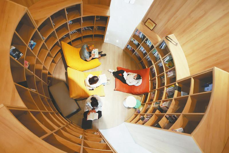4月22日,市民在德阳市旌阳区旌秀桂花“路上图书馆”内阅读。 唐渝川 摄(C视觉)