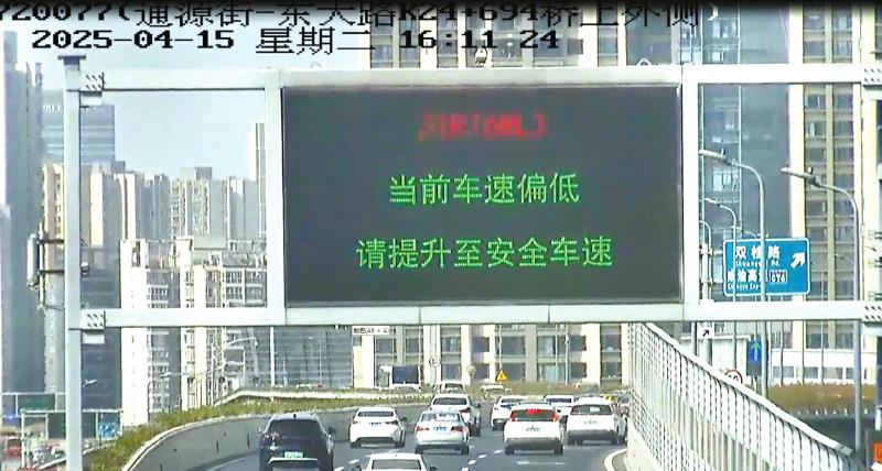 LED屏提醒驾驶员提速,及时消除慢行安全隐患。 成都交警供图