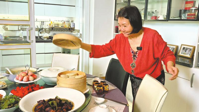 孙亦敏向记者展示自己制作的台湾特色美食——刈包。